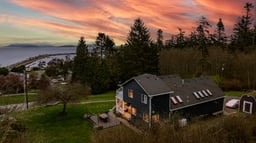 Enjoy sweeping views of Puget Sound, the San Juan Islands, and beyond from the spacious primary suite, complete with a private deck perfect for taking in stunning summer sunsets. This well-designed home offers multiple living spaces, including a mid-level family room with a newer pellet stove, two bedrooms, den, office, full bath, and convenient laundry room. The main level features a large eat-in kitchen, formal dining room with skylights and vaulted ceilings, and a bright living room filled with natural light and panoramic views. Thoughtfully updated throughout, including a newer roof, rebuilt upper deck with aluminum and glass railing, updated kitchen with granite countertops, custom backsplash, raised ceiling with LED lighting, and stainless steel appliances. Primary bathroom renovation and additional closet added. Additional upgrades include a whole-house water filtration system, French drain, LeafGuard gutters, newer flooring, interior paint, and updated shop space. Lower level includes a garage and separate shop for ample storage, hobbies, or parking. A rare opportunity to own a view home, with neighboring land trust with extensive trails and a home with extensive upgrades in a sought-after location.