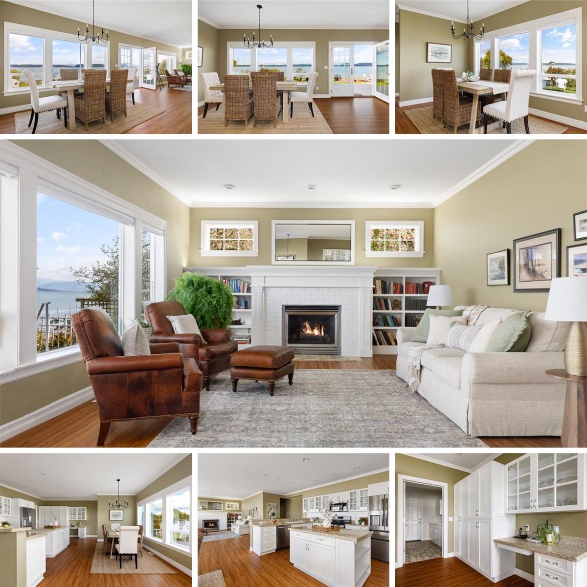 Custom-built waterfront retreat on Dugualla Bay with 60 feet of no-bank beach and unforgettable views of Mount Baker, islands, boats sailing by, and eagles soaring overhead. Built by the owner in 2003, this nearly 3,000-square-foot home offers 2 bedrooms plus 2 additional finished rooms, with spacious living areas on both the main and upper levels. Walls of waterfront windows, plantation shutters, and a beautifully crafted fireplace with custom bookcases create warmth and character throughout. Main-floor living offers ease and comfort, while upstairs provides generous flex space, including a craft room and a large room above the garage ideal for creating a dream space. Maybe you need a playroom, studio, workout space, office, guest overflow, or storage. Outside, the mature cottage garden—featured on the Oak Harbor Garden Tour—evokes the feel of Nantucket in the Northwest with the greenhouse, gurgling fountain, huge magnolia tree, and a bounty of perennial treasures. Across the street, a fenced garden along the estuary includes marionberries, peach and apple trees, and room for abundant vegetable gardening. Not only can you crab and fish right in front of your own home, but oyster farming is popular here, too! From sunrise over the bay to sunset alpenglow on Mount Baker, this is a home that invites you to slow down, stay, and play!