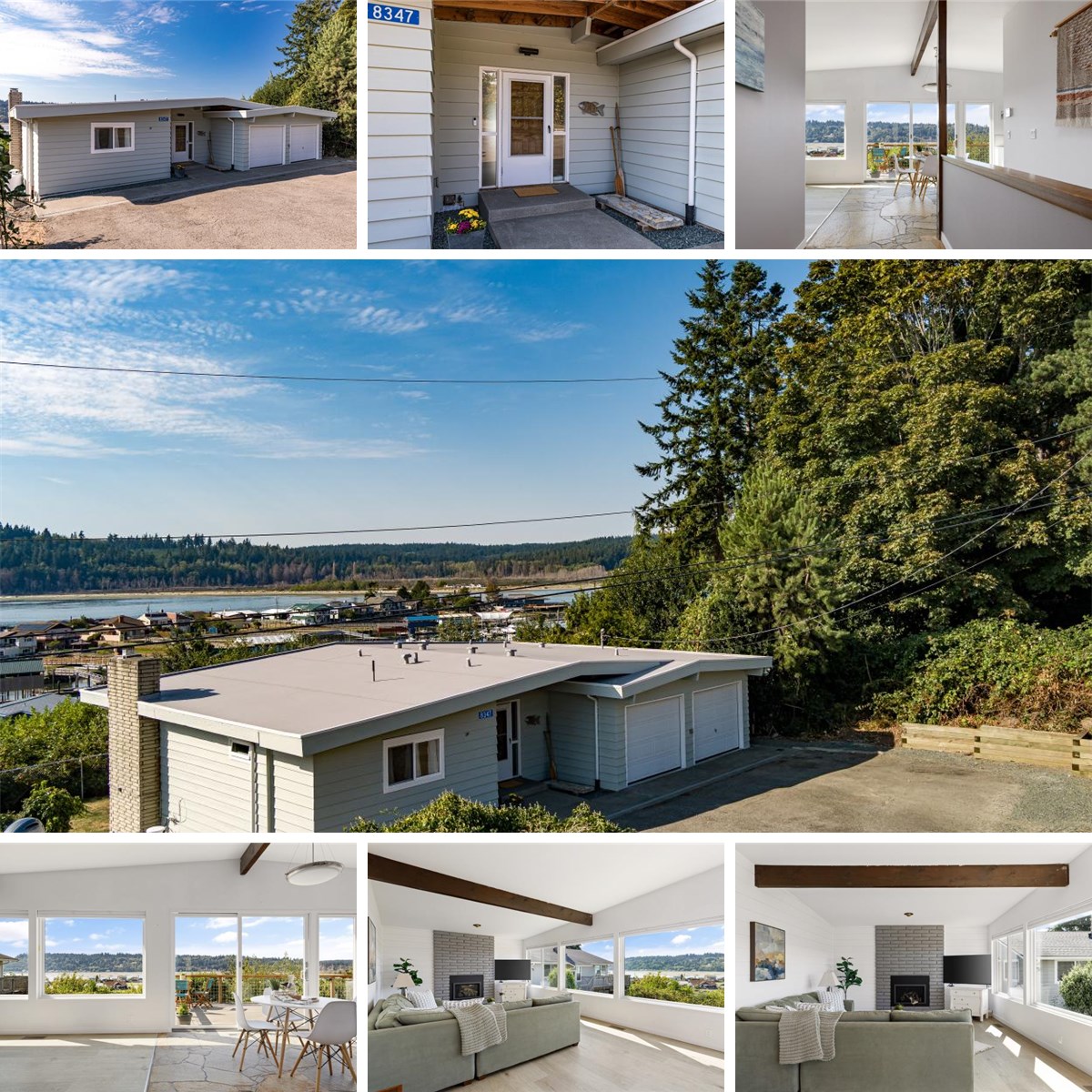 An expansive wall of windows frames a breathtaking panorama of the bay, canal, sound, and majestic Olympic Mountains, creating a living work of art that changes with the light. This meticulously renovated home has been reimagined for modern living, with every detail thoughtfully addressed. A full kitchen remodel features custom cabinetry, quartz countertops, and a full suite of updated appliances. The home's infrastructure has been fully upgraded, from the new heat pump and TPO roof to the Anderson windows, electrical system, and luxury vinyl plank flooring throughout. Two fully renovated bathrooms and a cozy gas fireplace complete the transformation, ensuring a turnkey experience where you can simply move in and soak in the view.